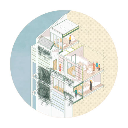 This project is a study about the renovation and reconstruction of the existing building in Belgrade. The existing object in Bezanijska Kosa (Pere Segedinca street) was taken as an example on which the reconstruction project design was made. The reconstruction of the particular object includes adding new spaces on the bigger existing facades, reorganization of the space in the way that it be more functional, giving more space to the existing one, changing the existing thermal materials and windows with the new ones that have better thermal performances and adding solar panels on the roof with the idea of making the building sustainable. Beside makeing the new visual identity to the existing object, the main goal was making the object more sustainable with better reduction of the heath losses. At the end, the analyses was made by completing the energy efficiency certification of the building.